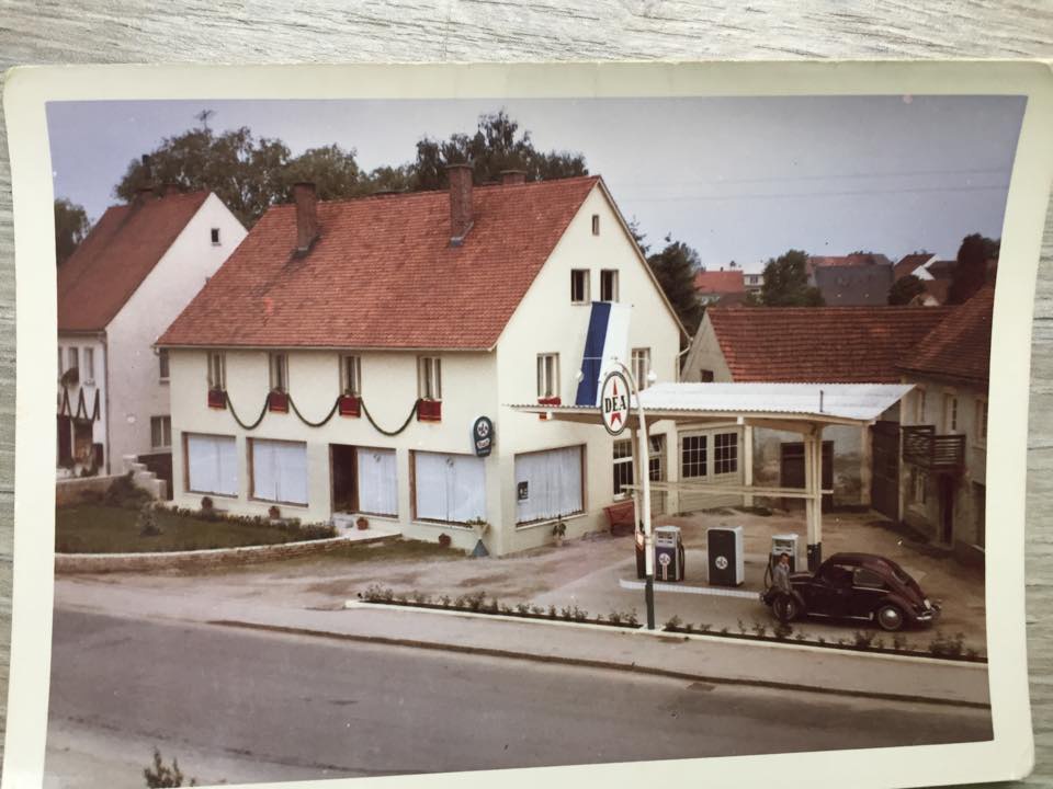 DEA-Tankstelle Dambeck in der Hauptstraße. Im Haus befindet sich später die Zahnarztpraxis Lerner.