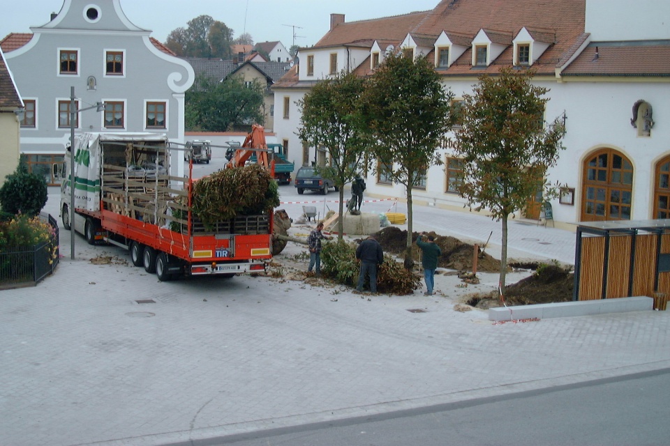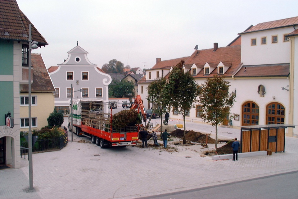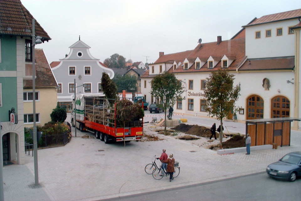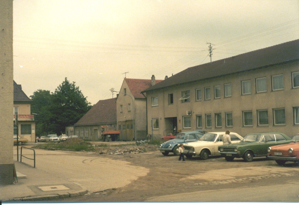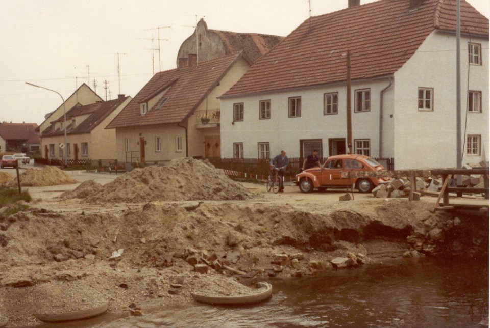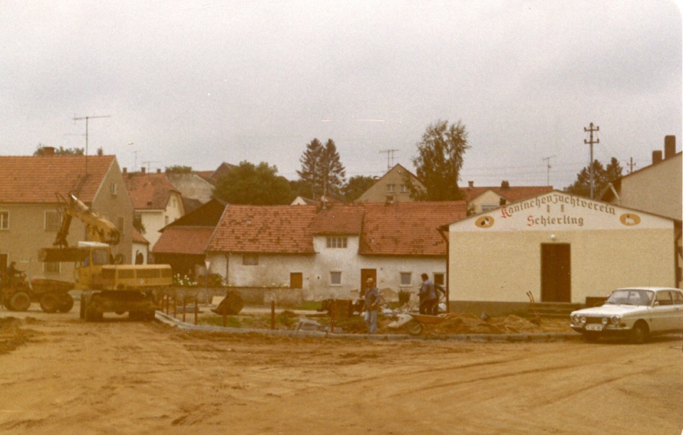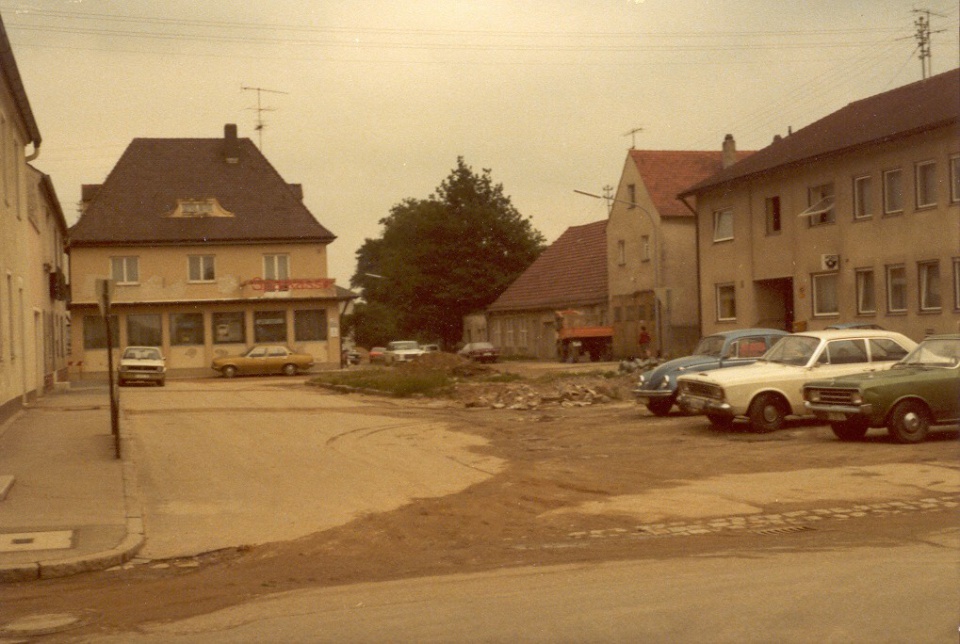 Der Rathausplatz 1978 nach der Kanalisation. Im Rathaus war noch die Poststelle untergebracht. Nach dem Rathaus standen hier noch das Feuerwehrhaus und der Kindergarten.