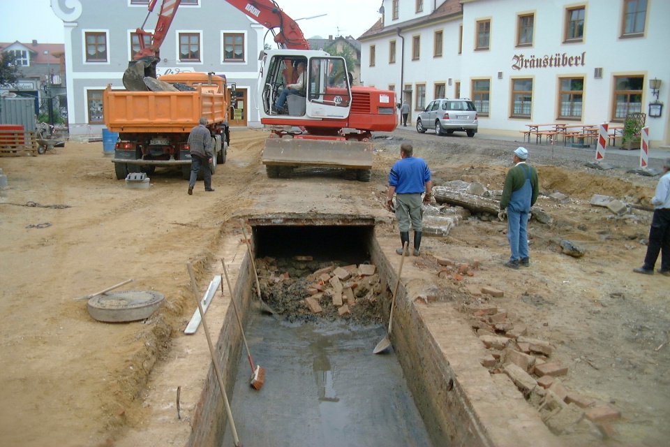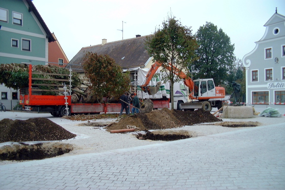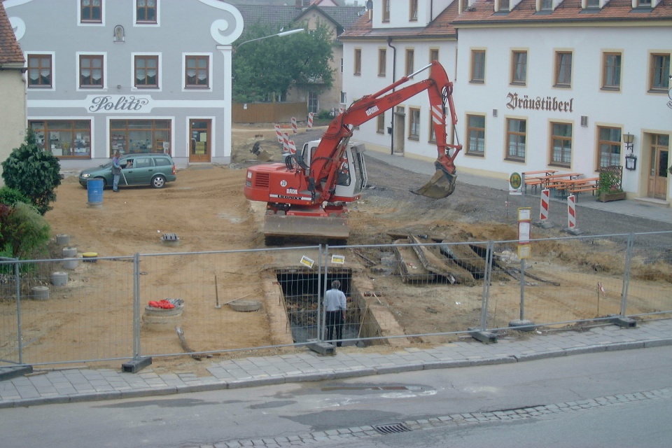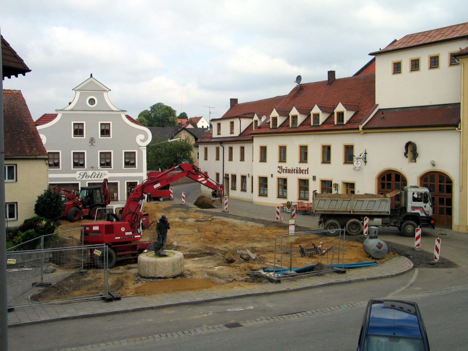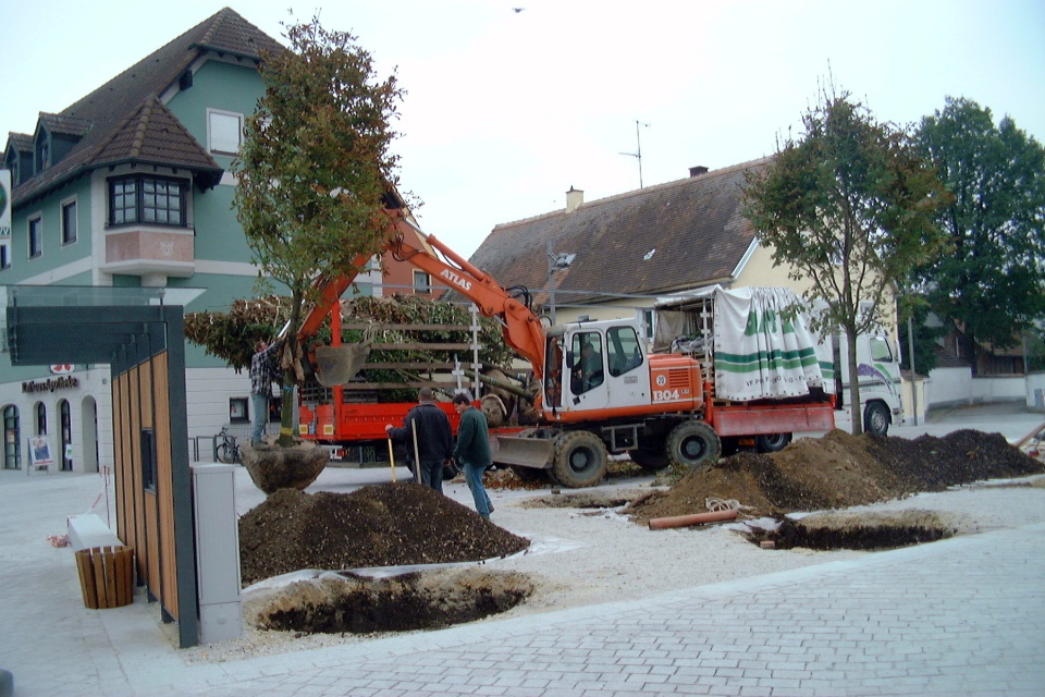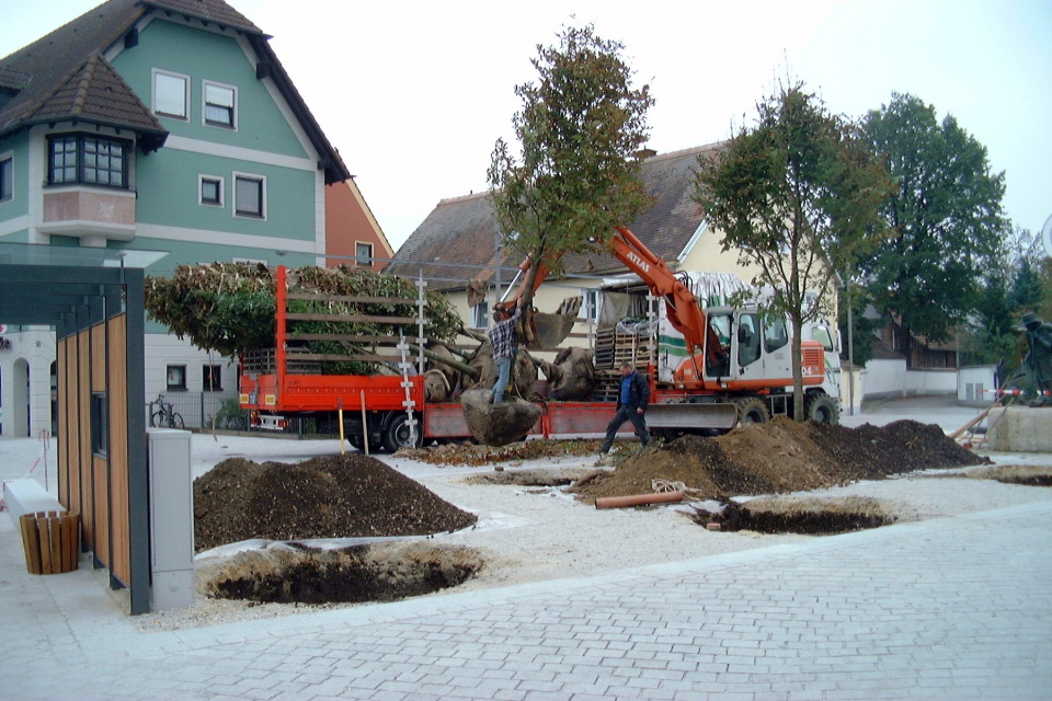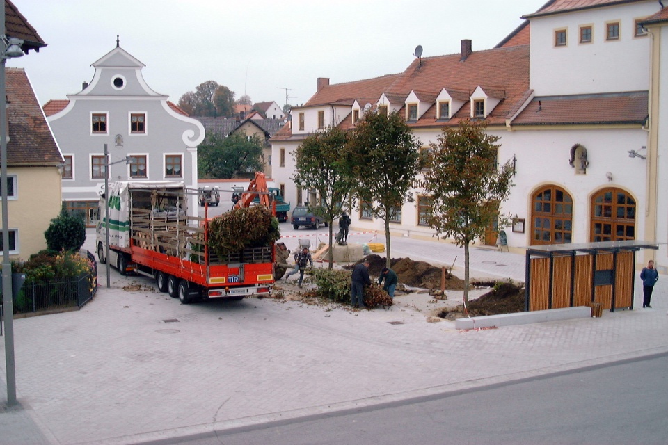Der Rathausplatz 1978 nach der Kanalisation. Im Rathaus war noch die Poststelle untergebracht. Nach dem Rathaus standen hier noch das Feuerwehrhaus und der Kindergarten.