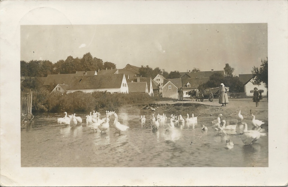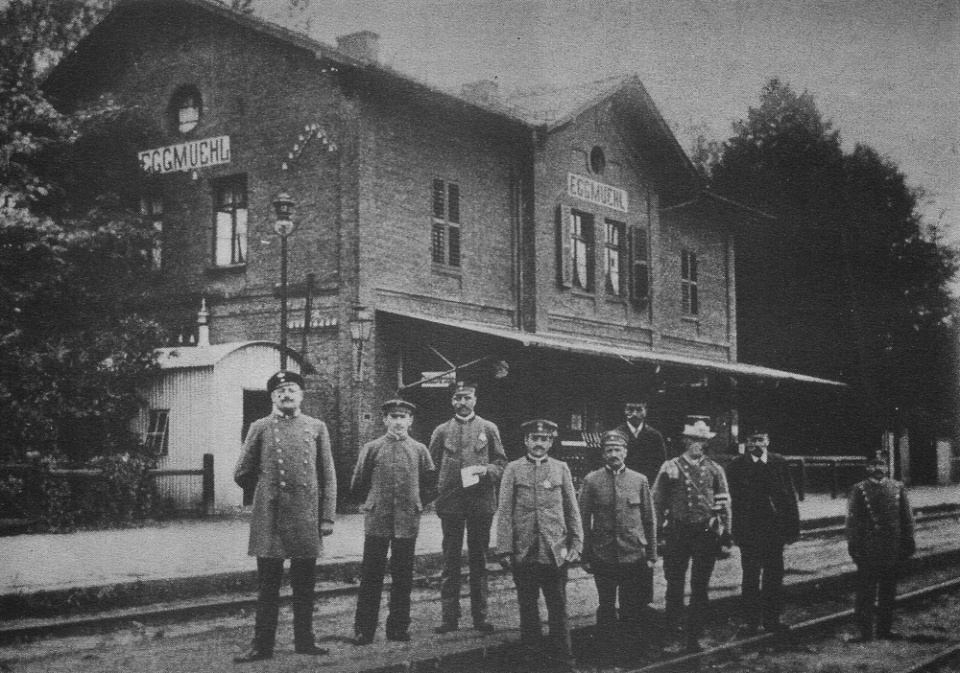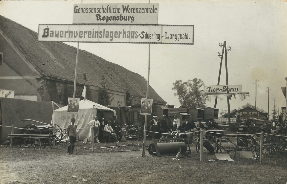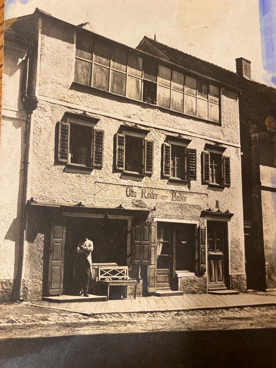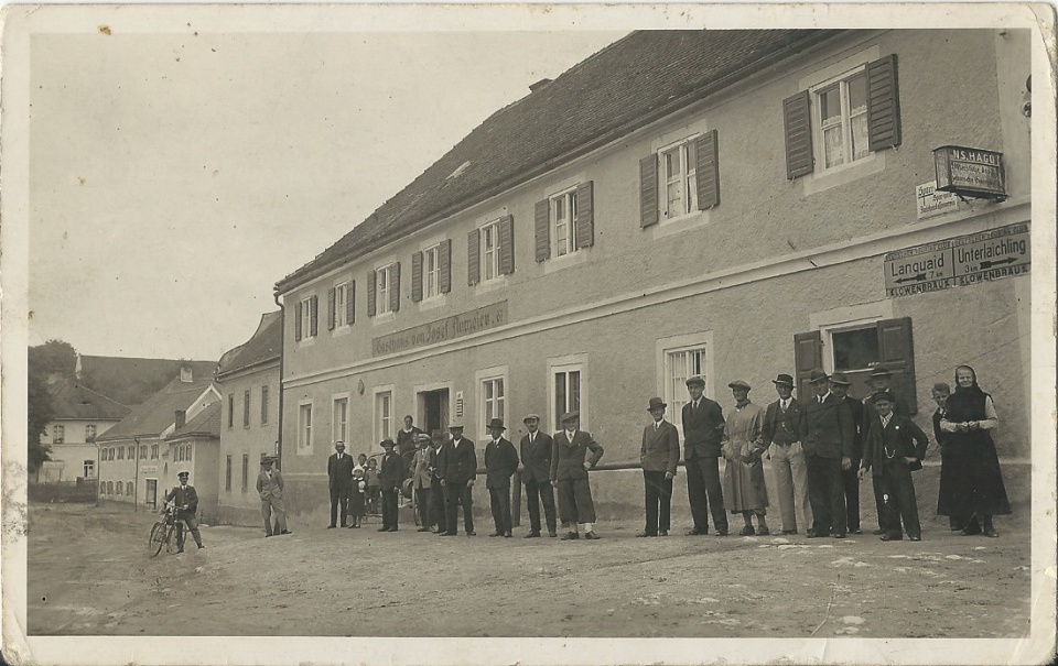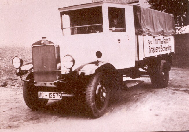 Blick in den Brauereihof um 1900. Die Einfahrt befindet sich dort wo auch heute die Einfahrt ist. Das Gebäude rechts war das alte Bürogebäude, welches Mitte der 1960 Jahre abgerissen wurde.
