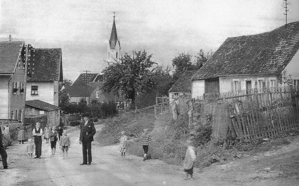 Ansicht Kirchberg. An den beiden Türen an der Kirchmauer sieht man, dass hier Lagerräume vorhanden waren.